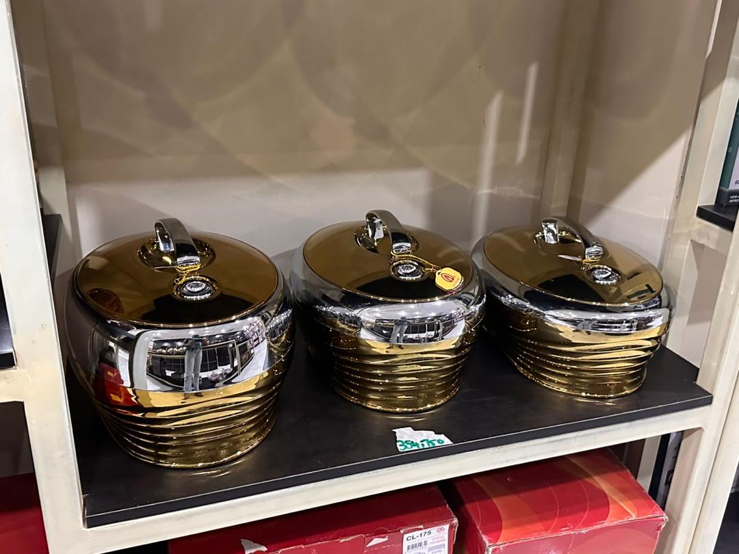 3 PCs in a set gold plated food warmer.